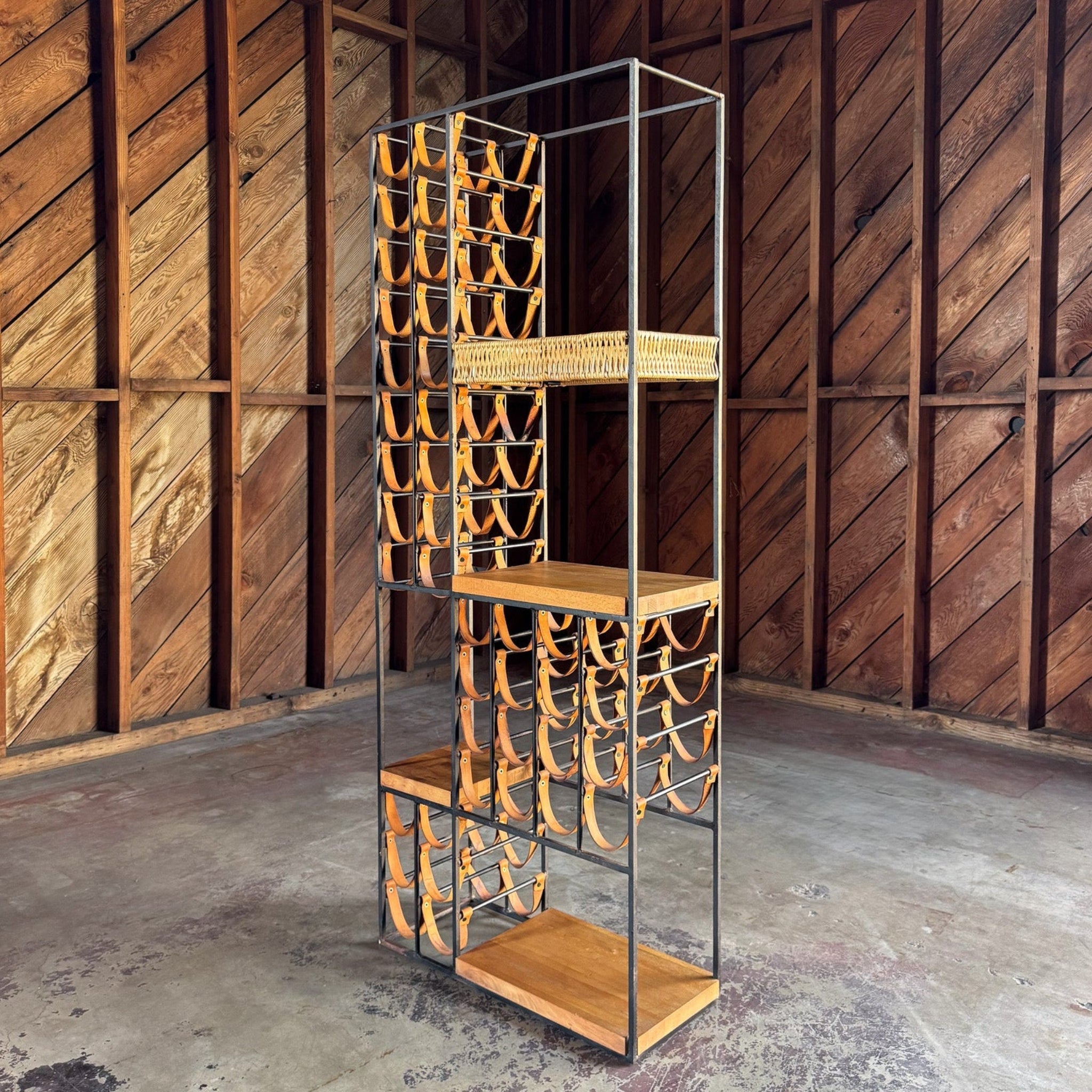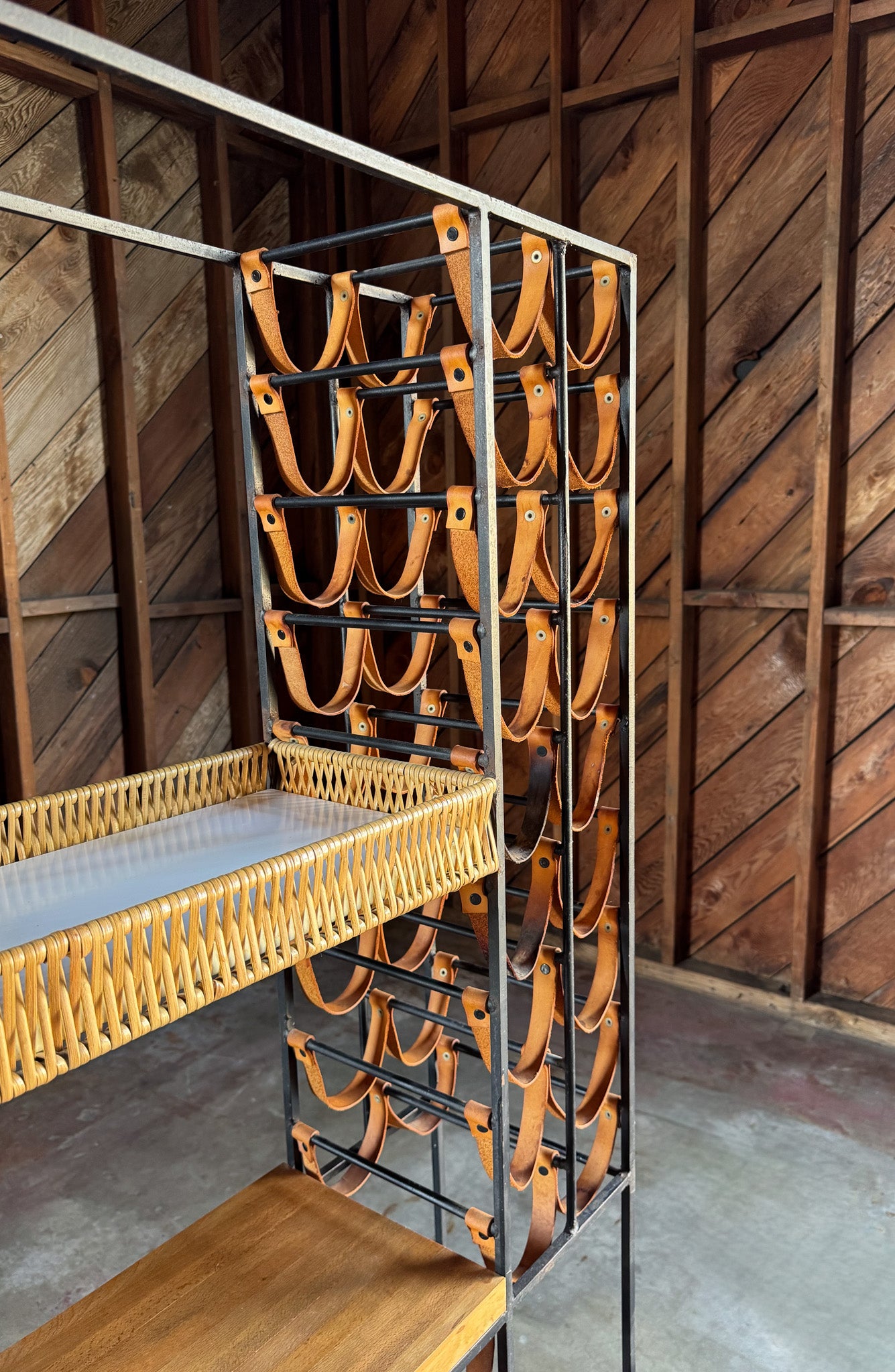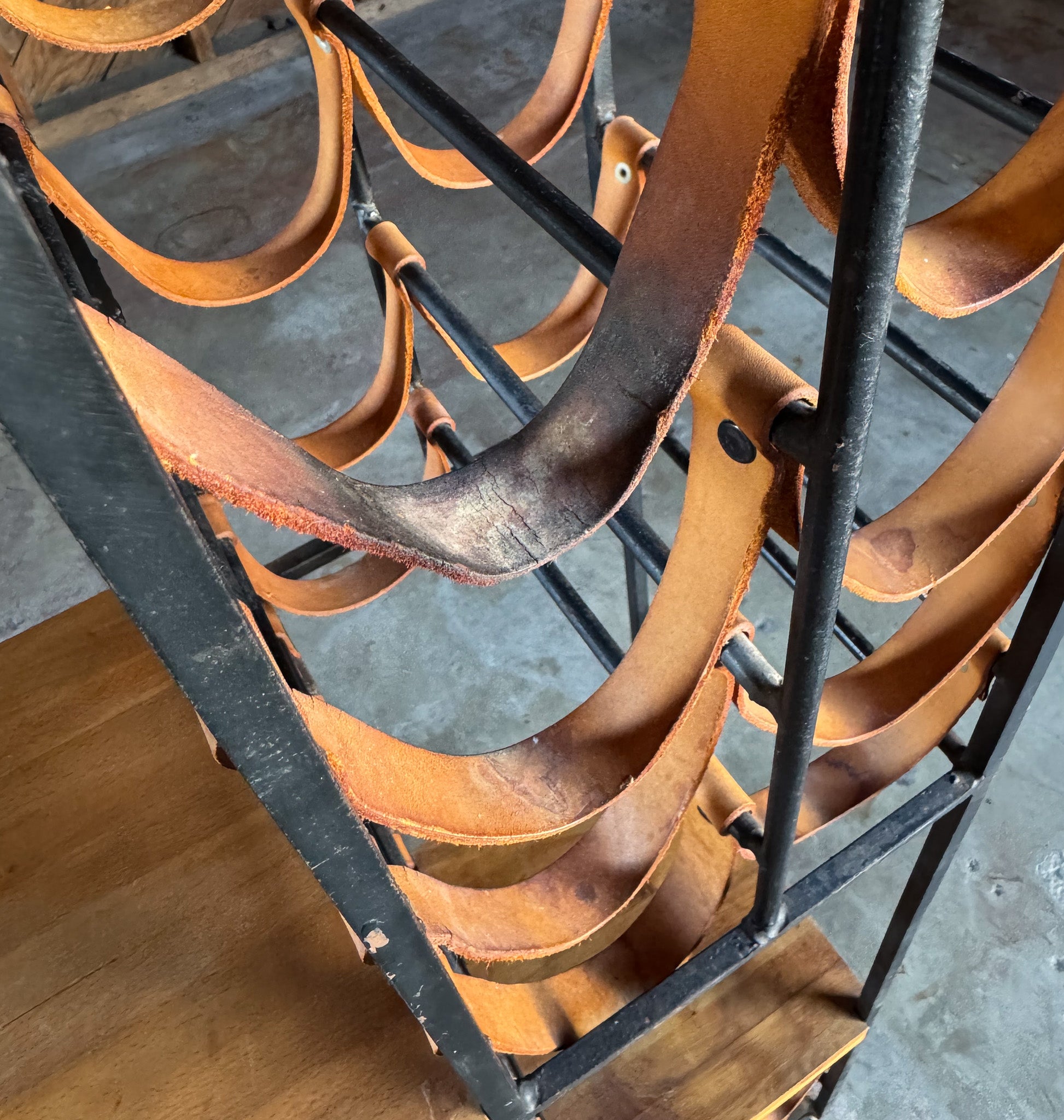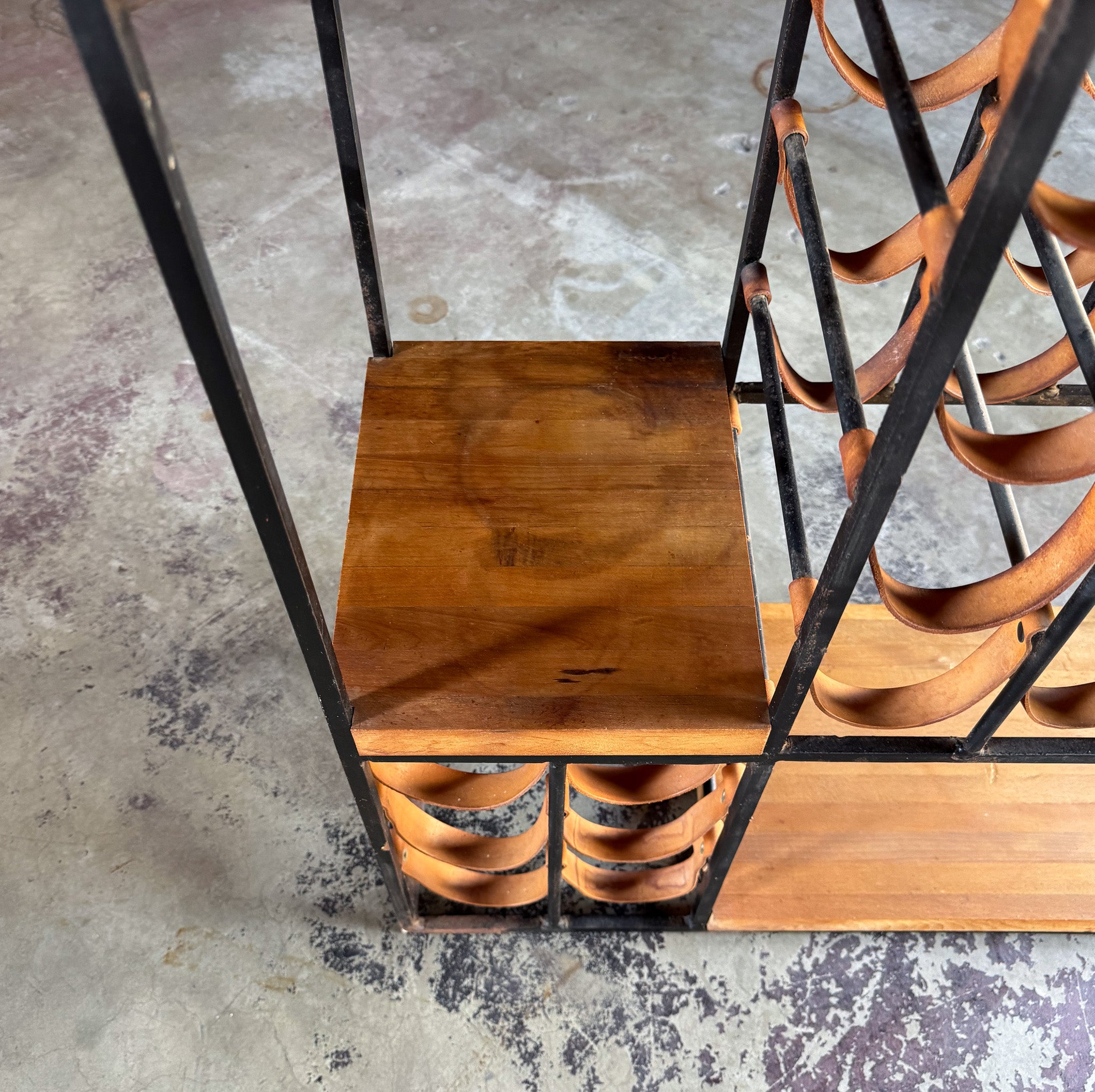 Arthur Umanoff Leather & Iron Wine Rack for Shaver Howard, c.1954