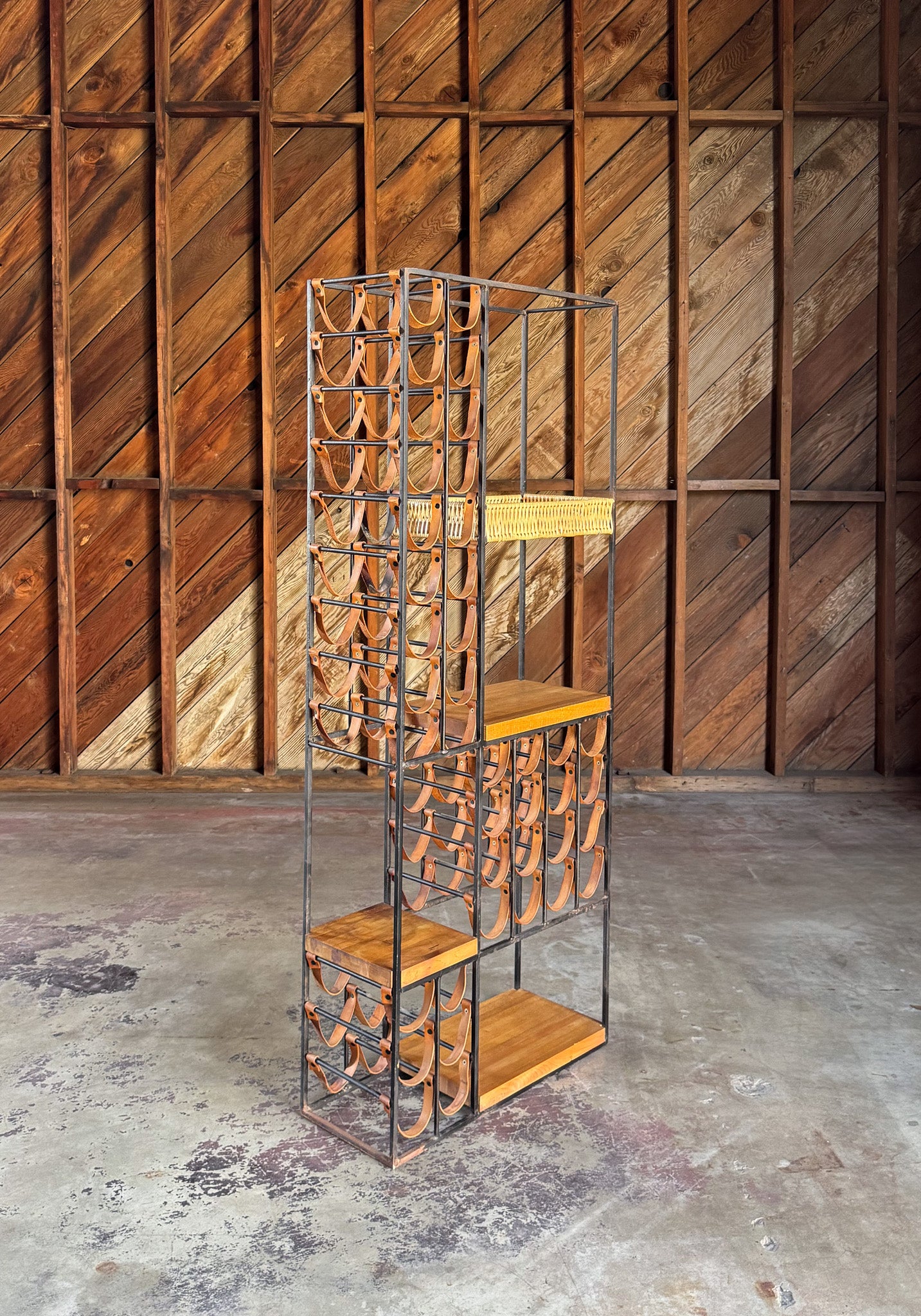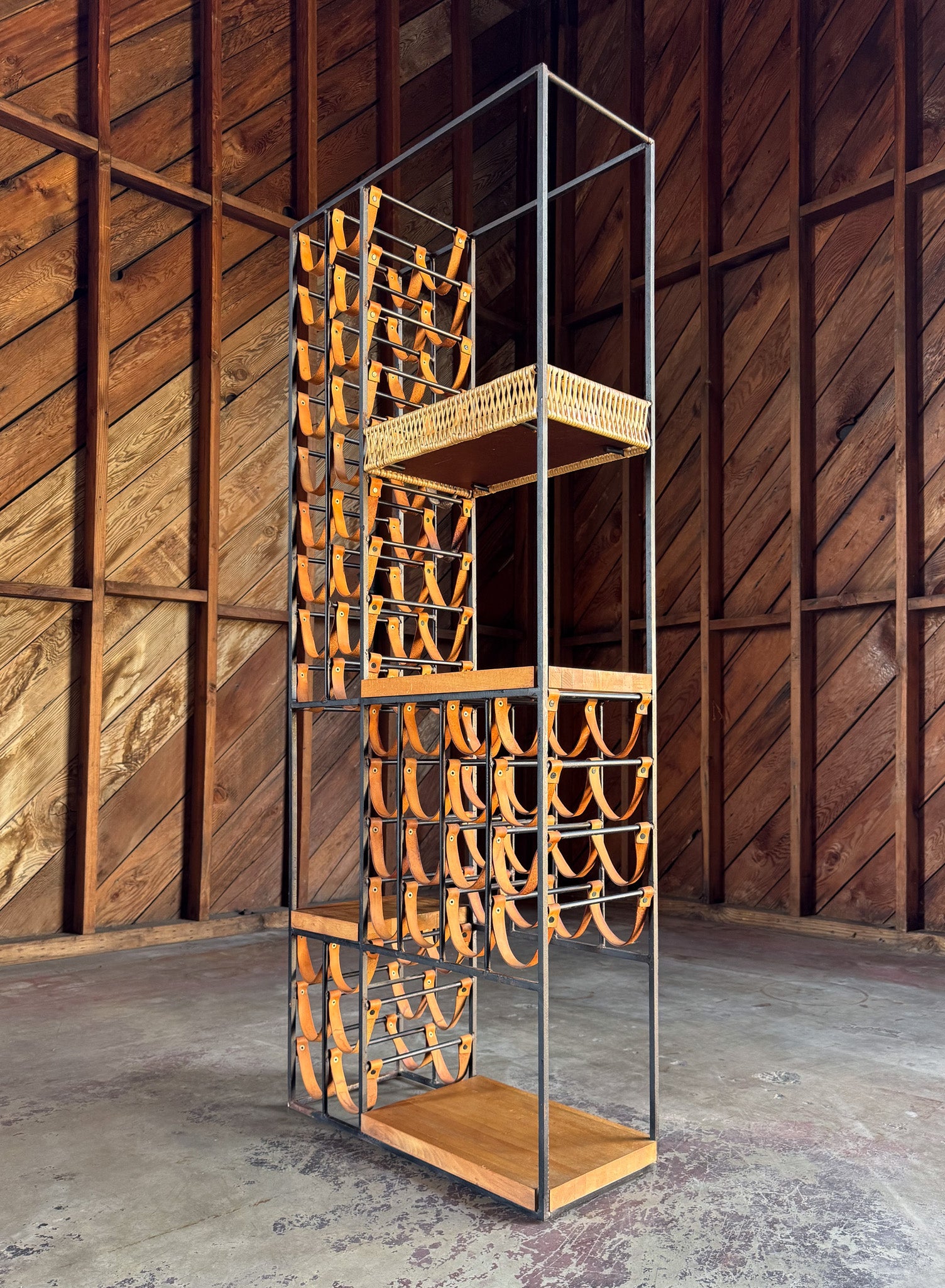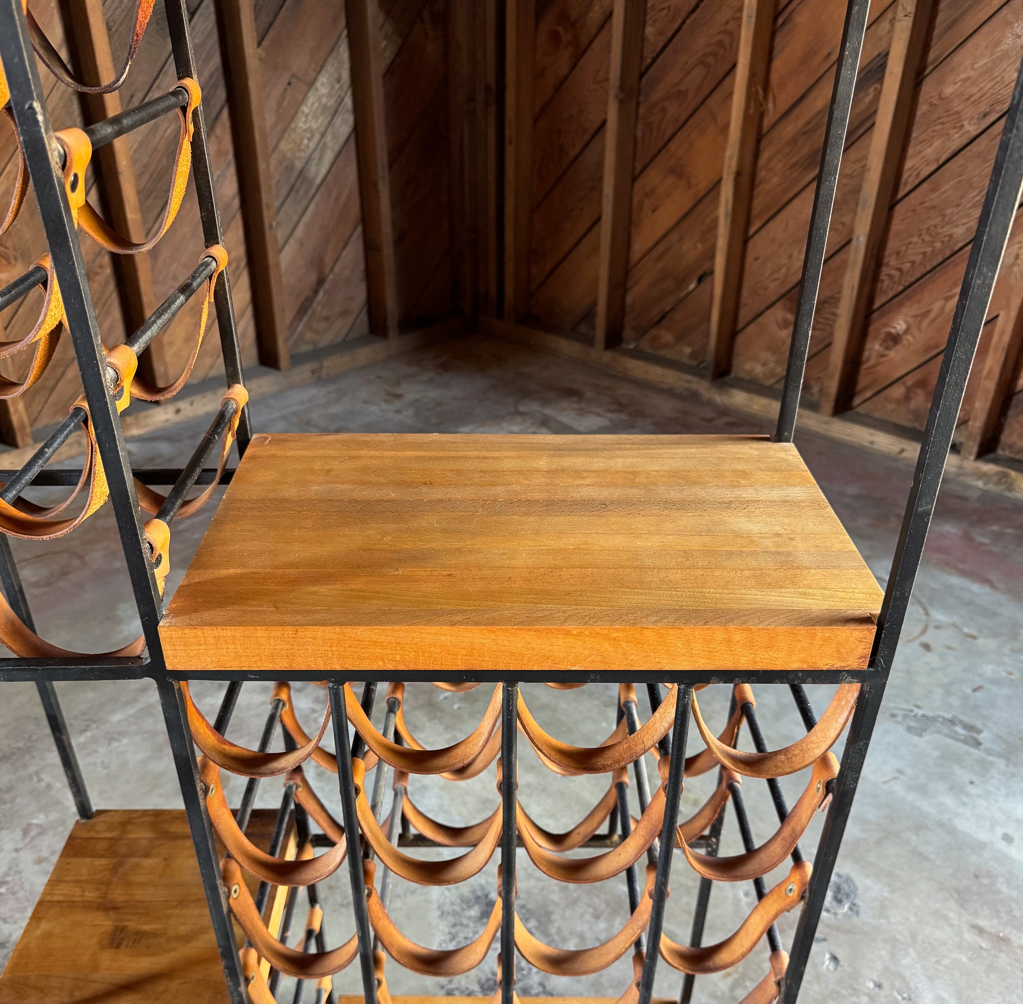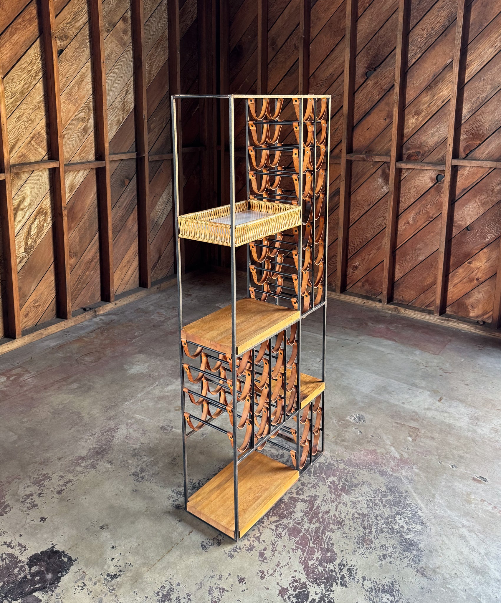 Arthur Umanoff Leather & Iron Wine Rack for Shaver Howard, c.1954