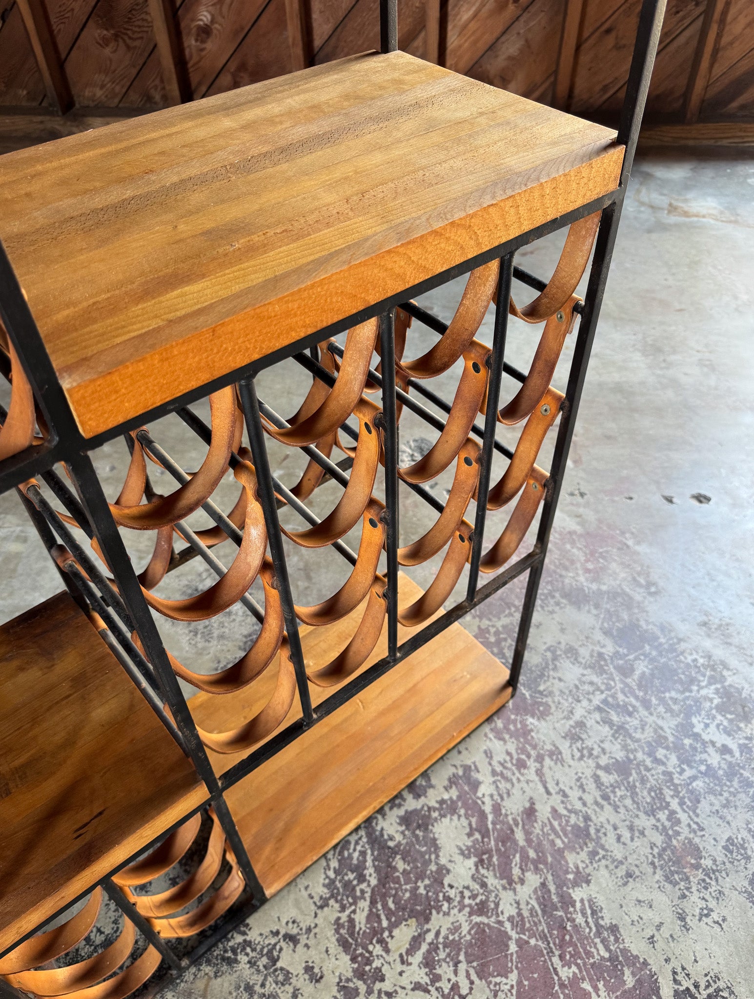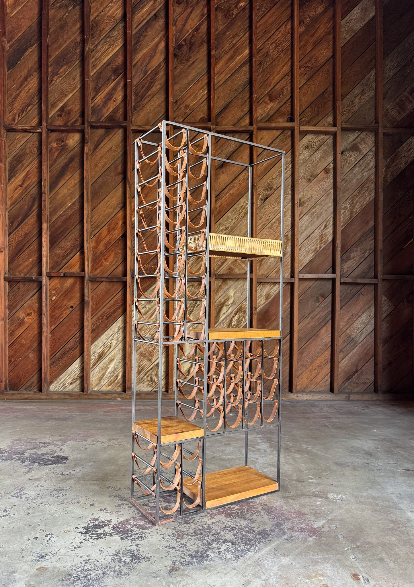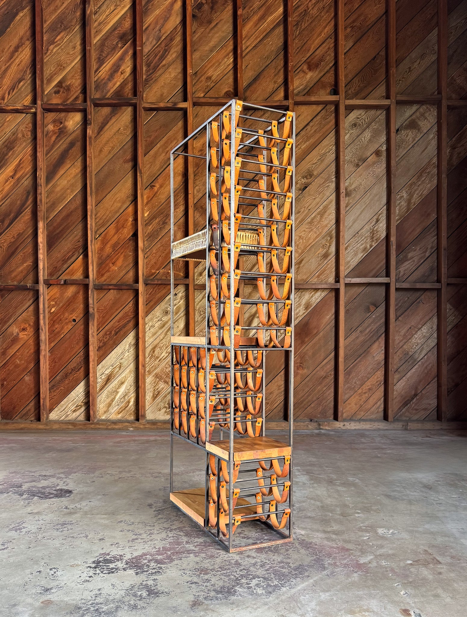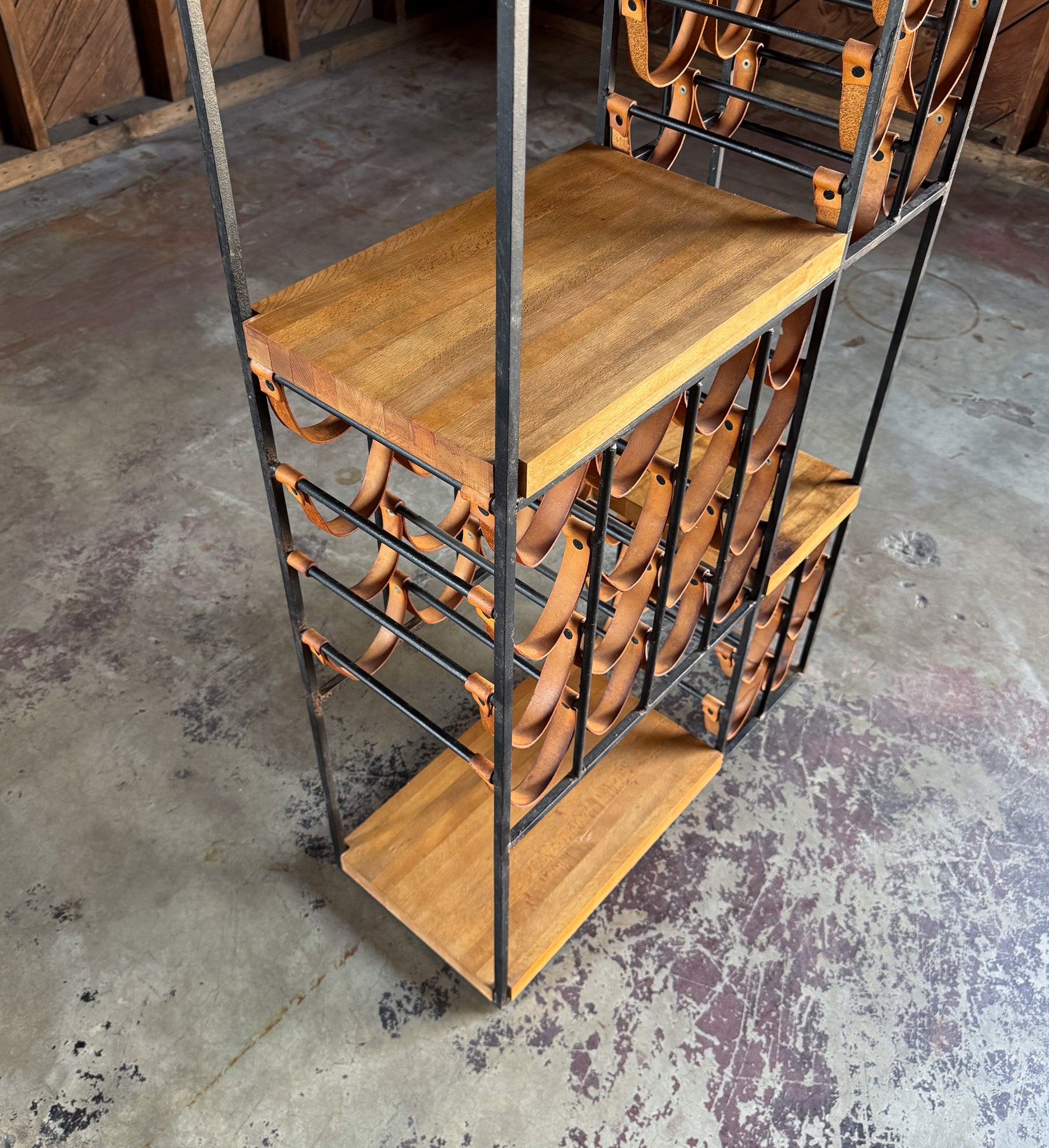 Arthur Umanoff Leather & Iron Wine Rack for Shaver Howard, c.1954