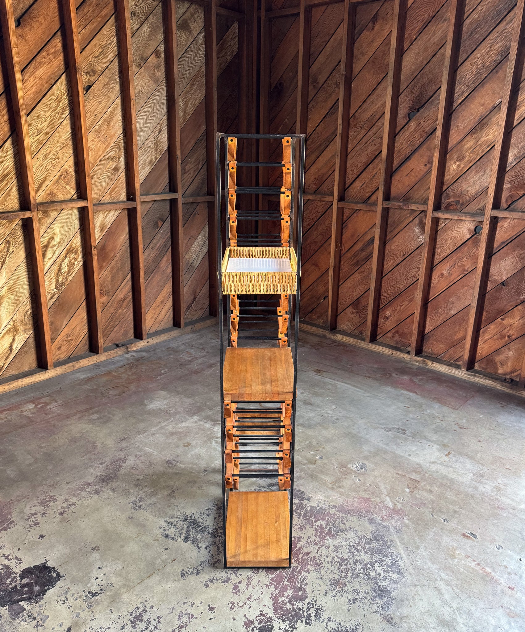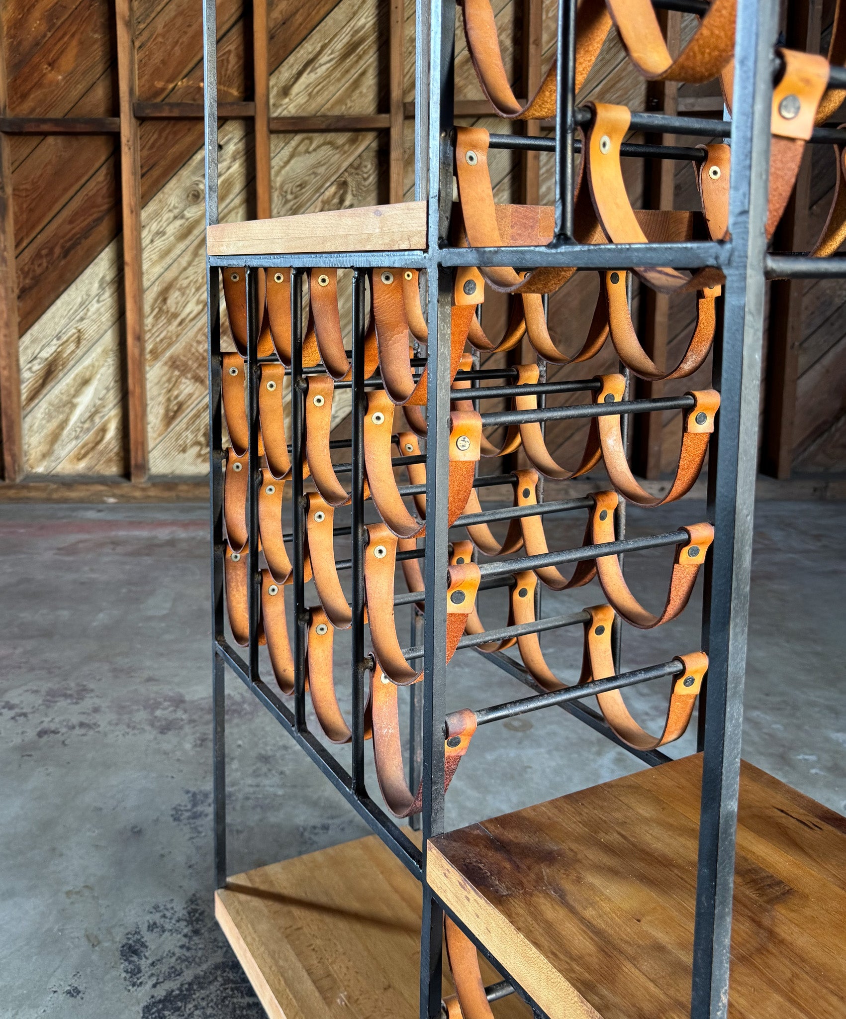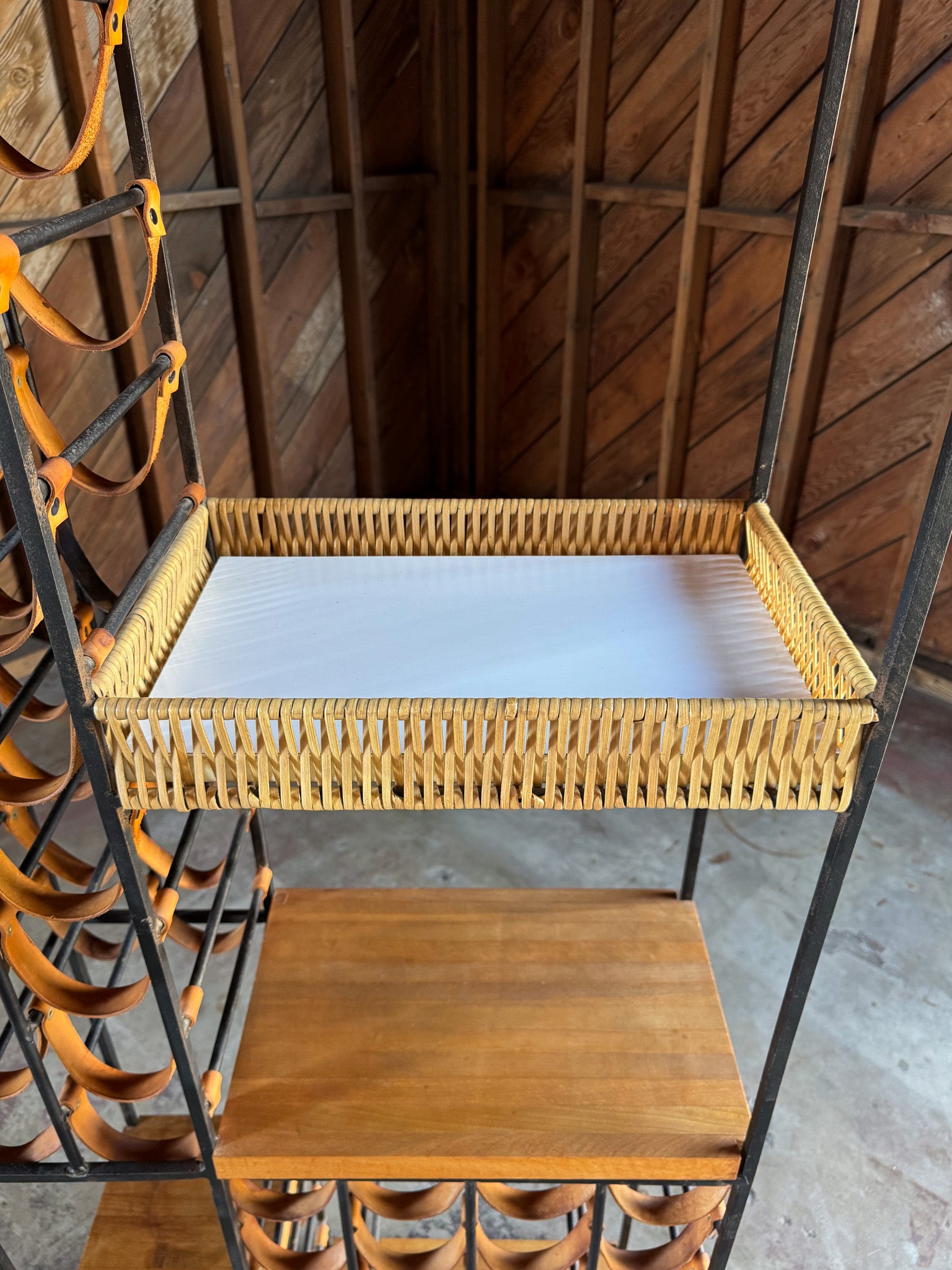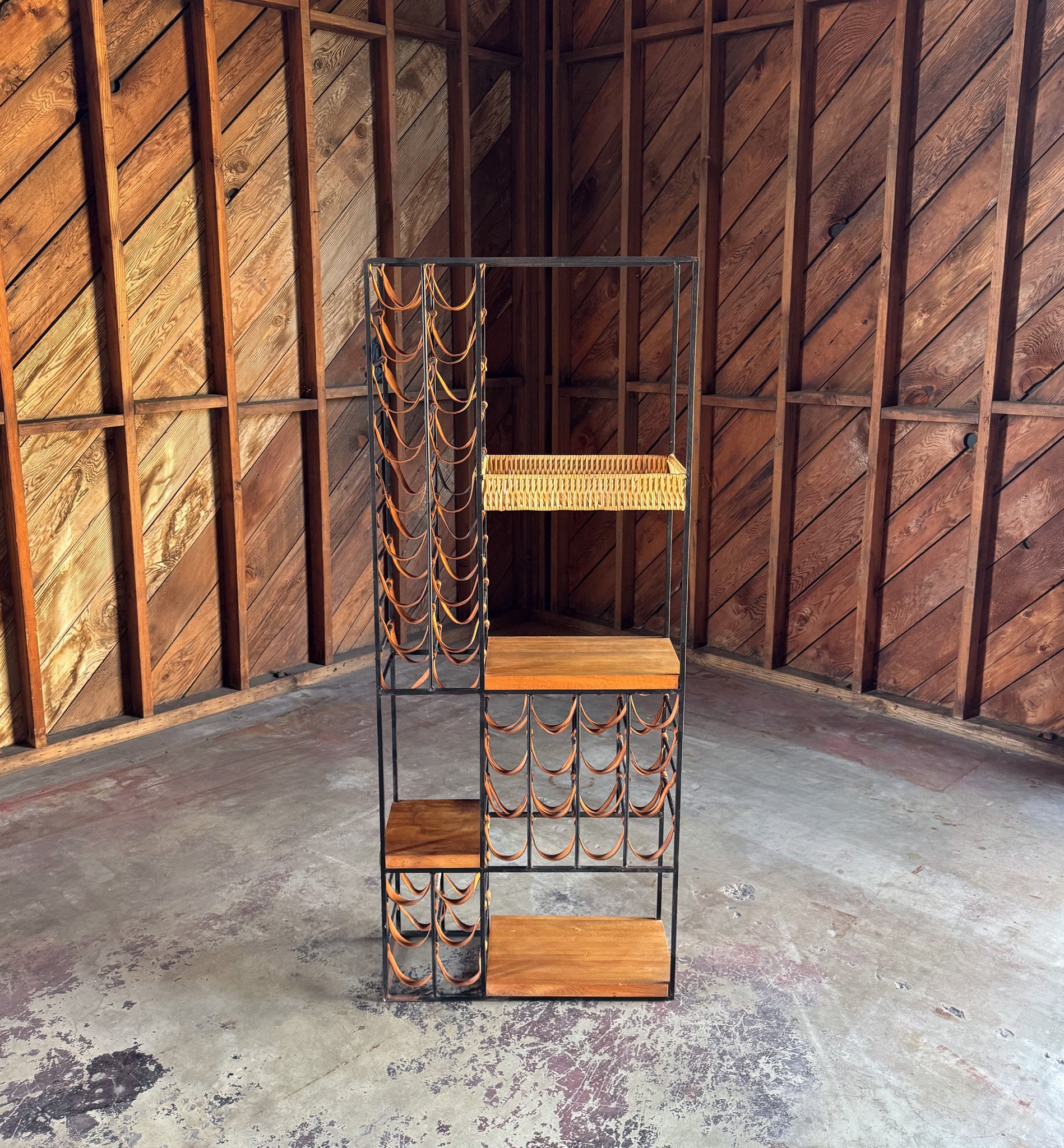 Arthur Umanoff Leather & Iron Wine Rack for Shaver Howard, c.1954