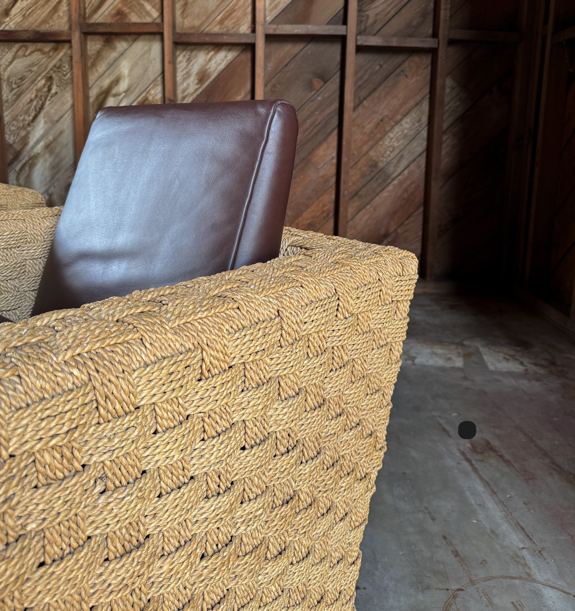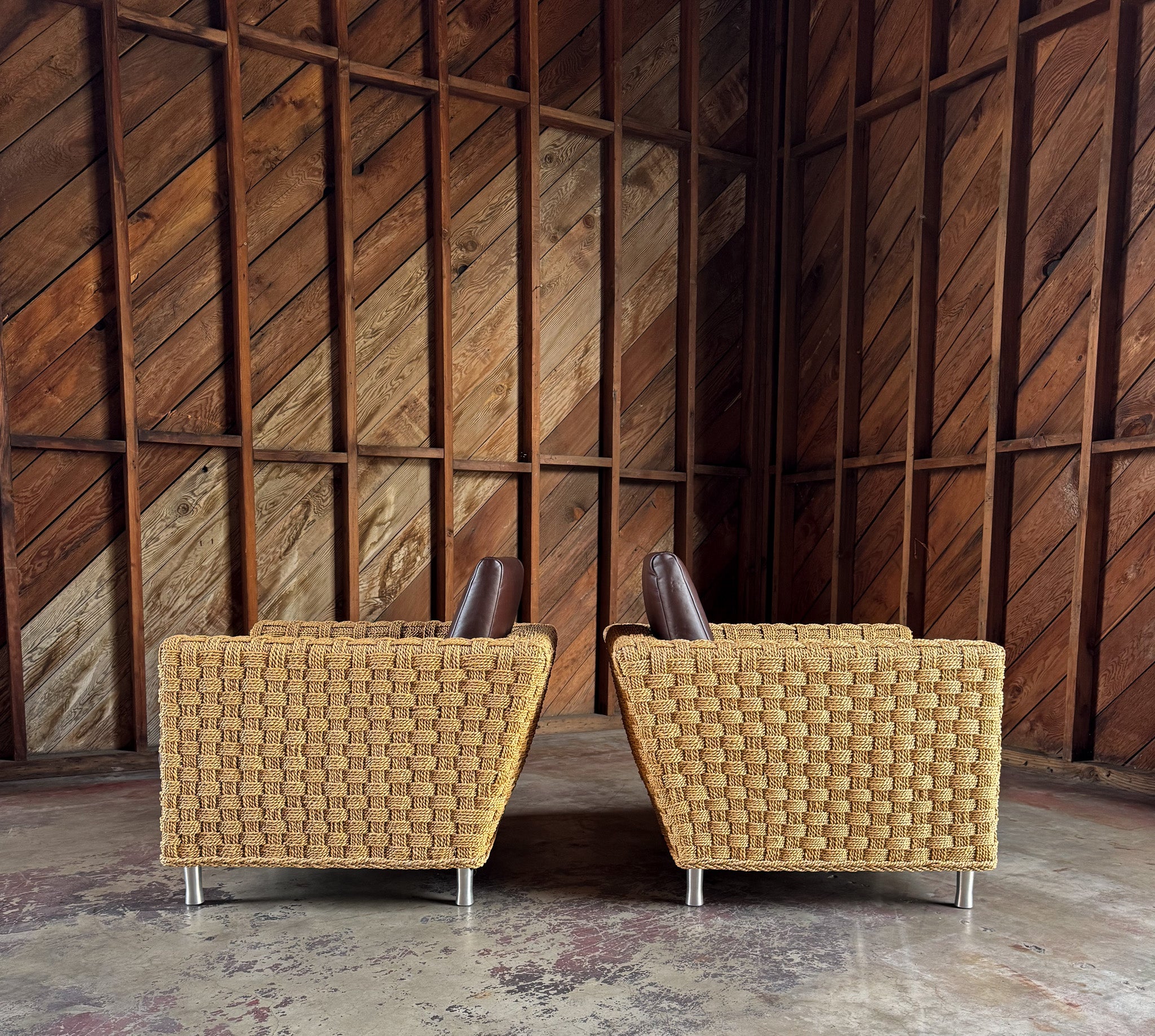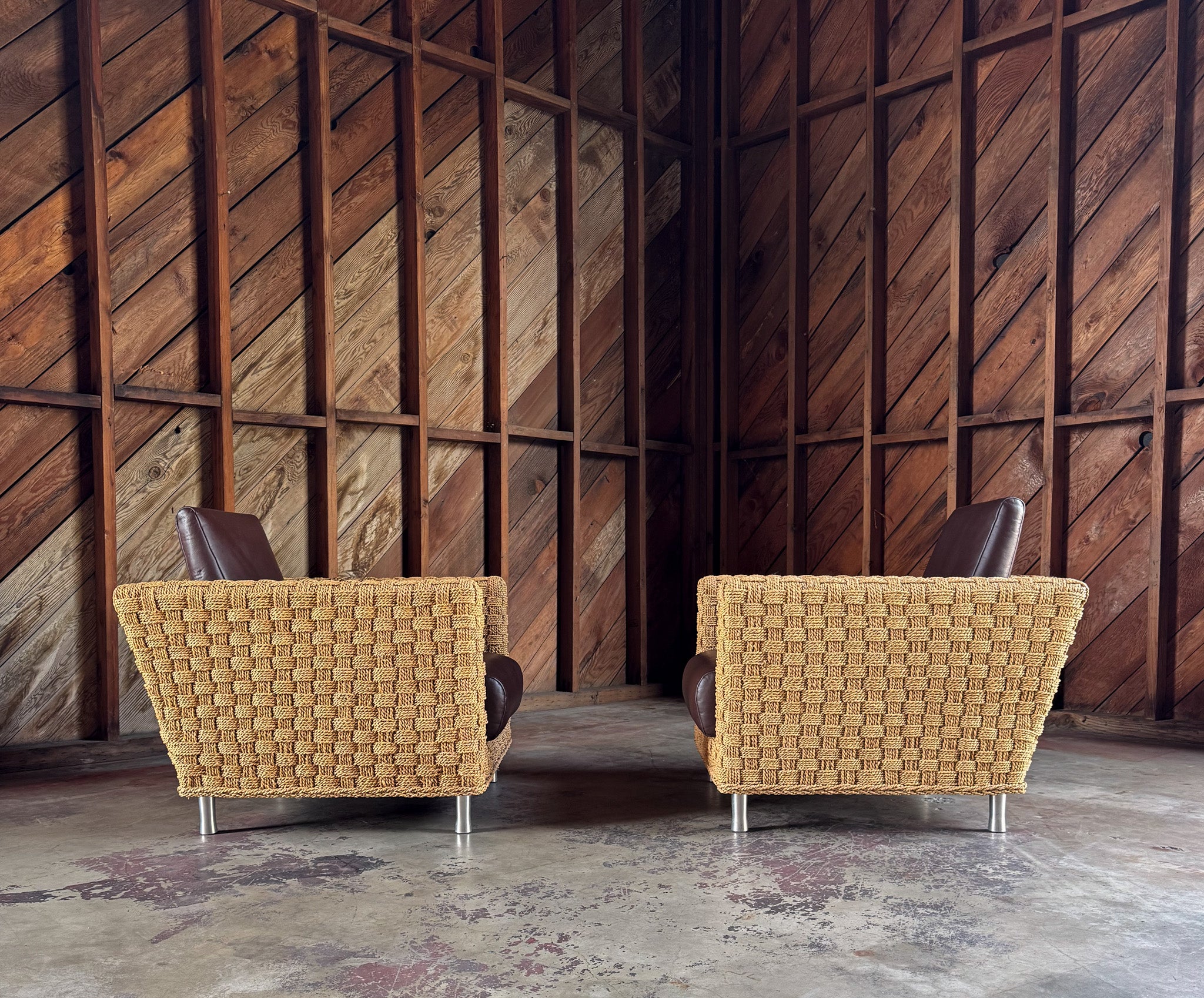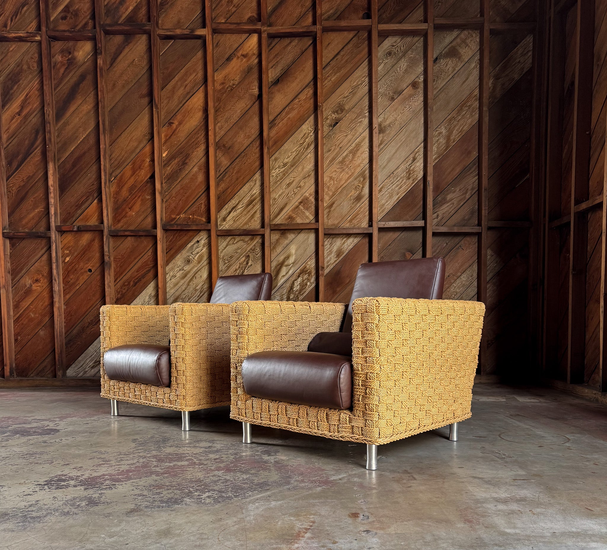Didier Gomez Hemp & Leather " Wicky " Lounge Chairs for Ligne Roset, France, c.1995. The listed price is for the pair. ( Two pairs available. )