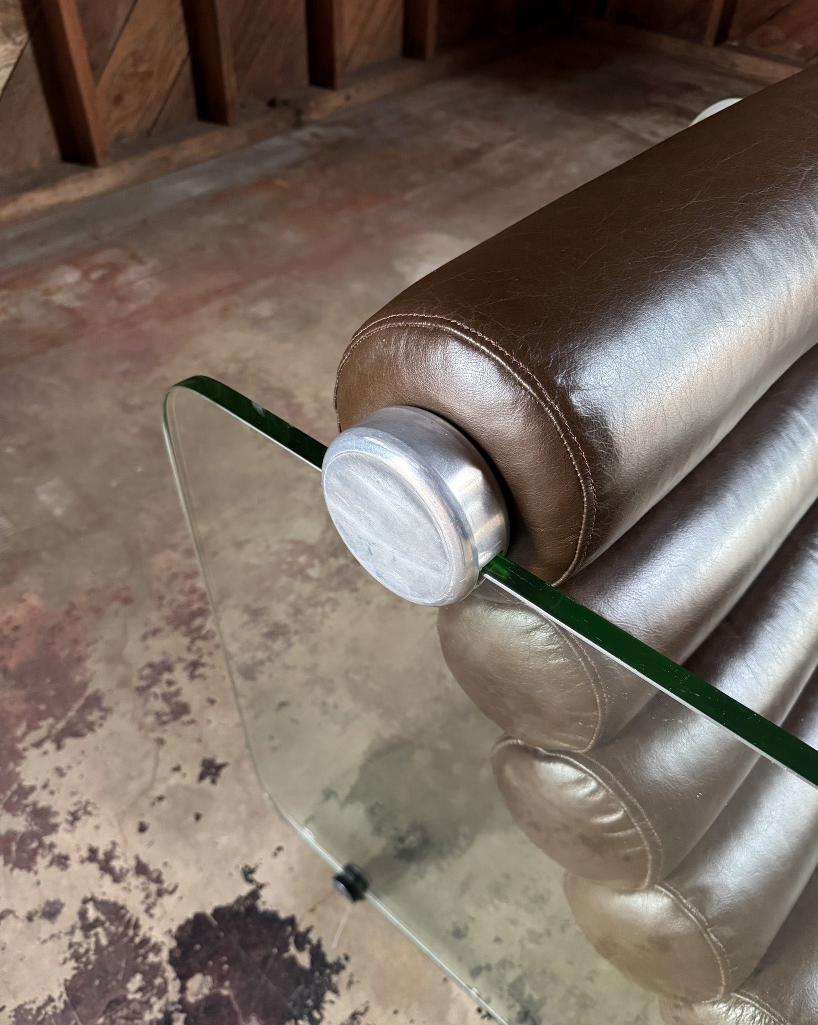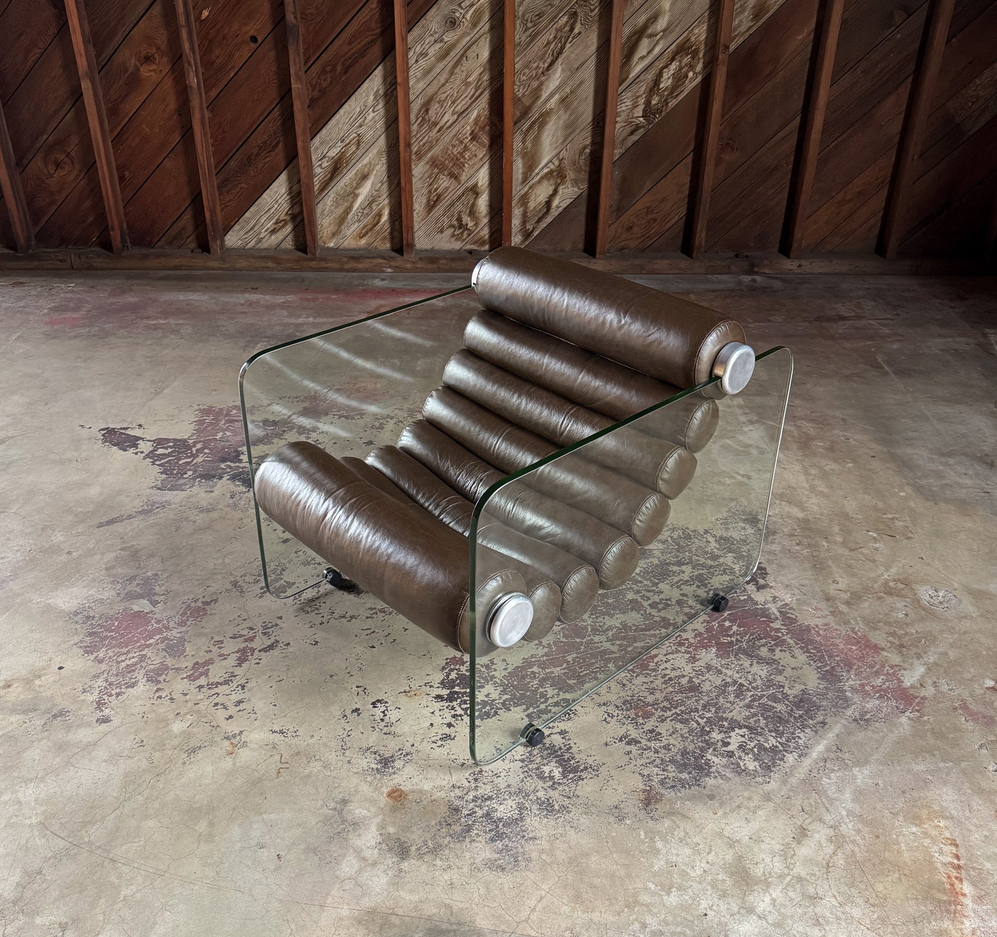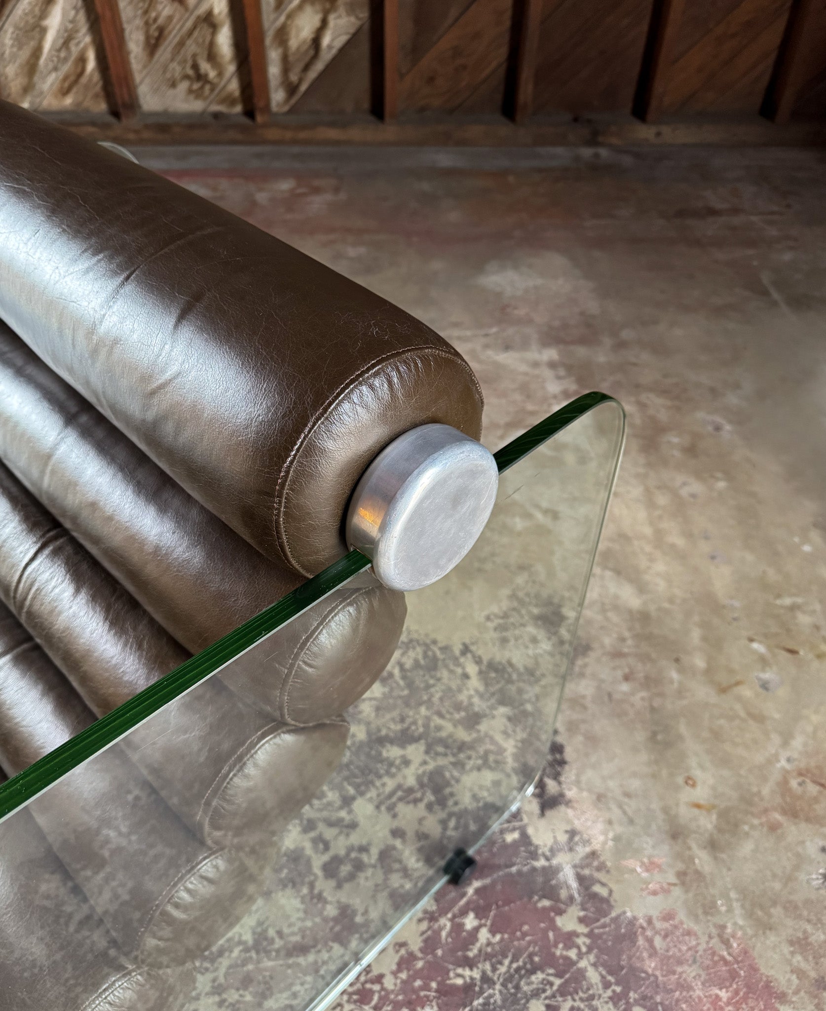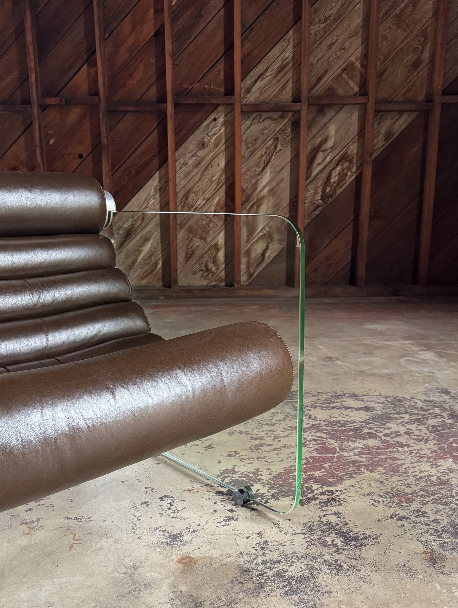 Fabio Lenci Hyaline Lounge Chair for Comfort Line, Italy, c.1970. Tempered Glass, Leather & Aluminum.