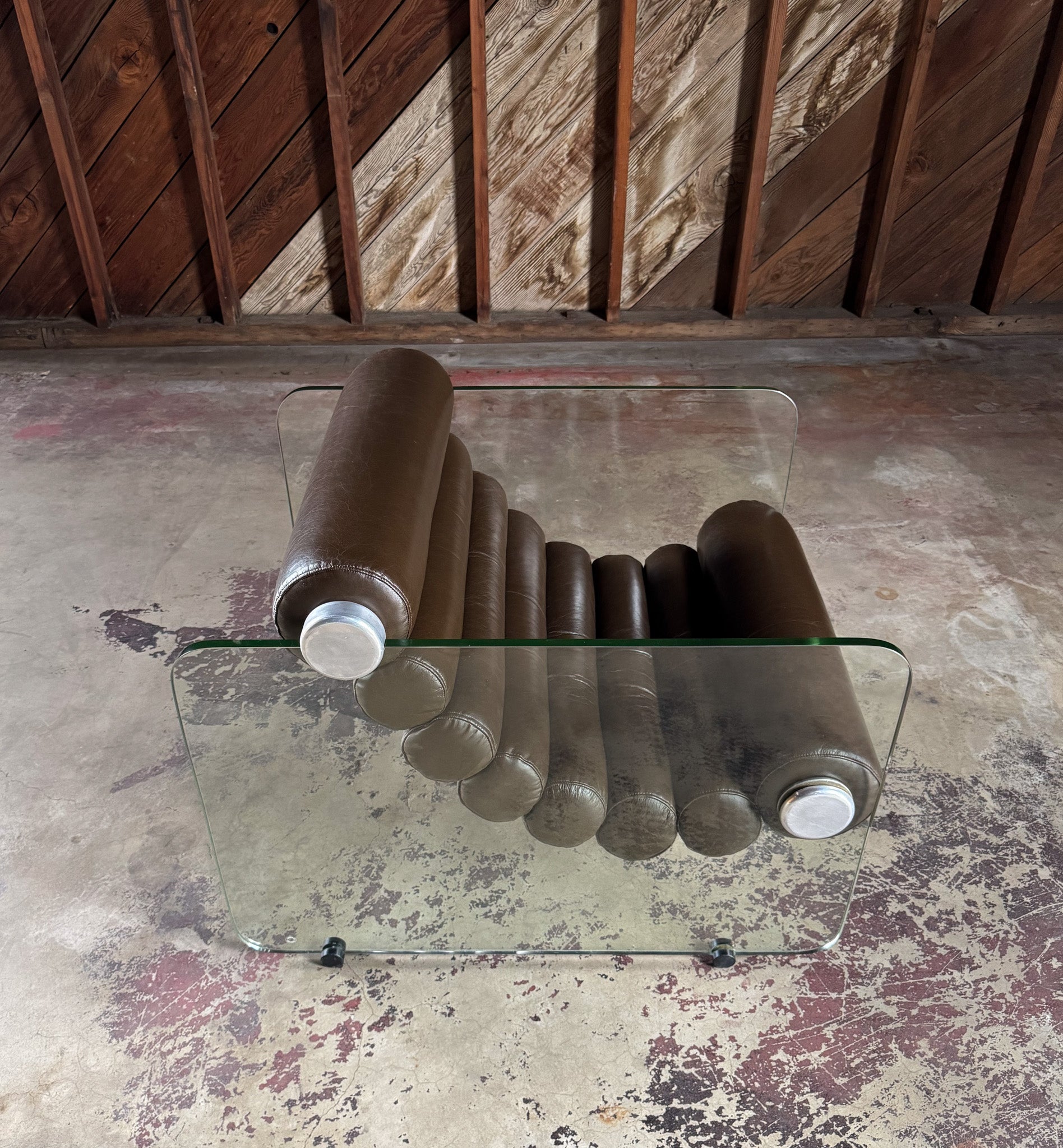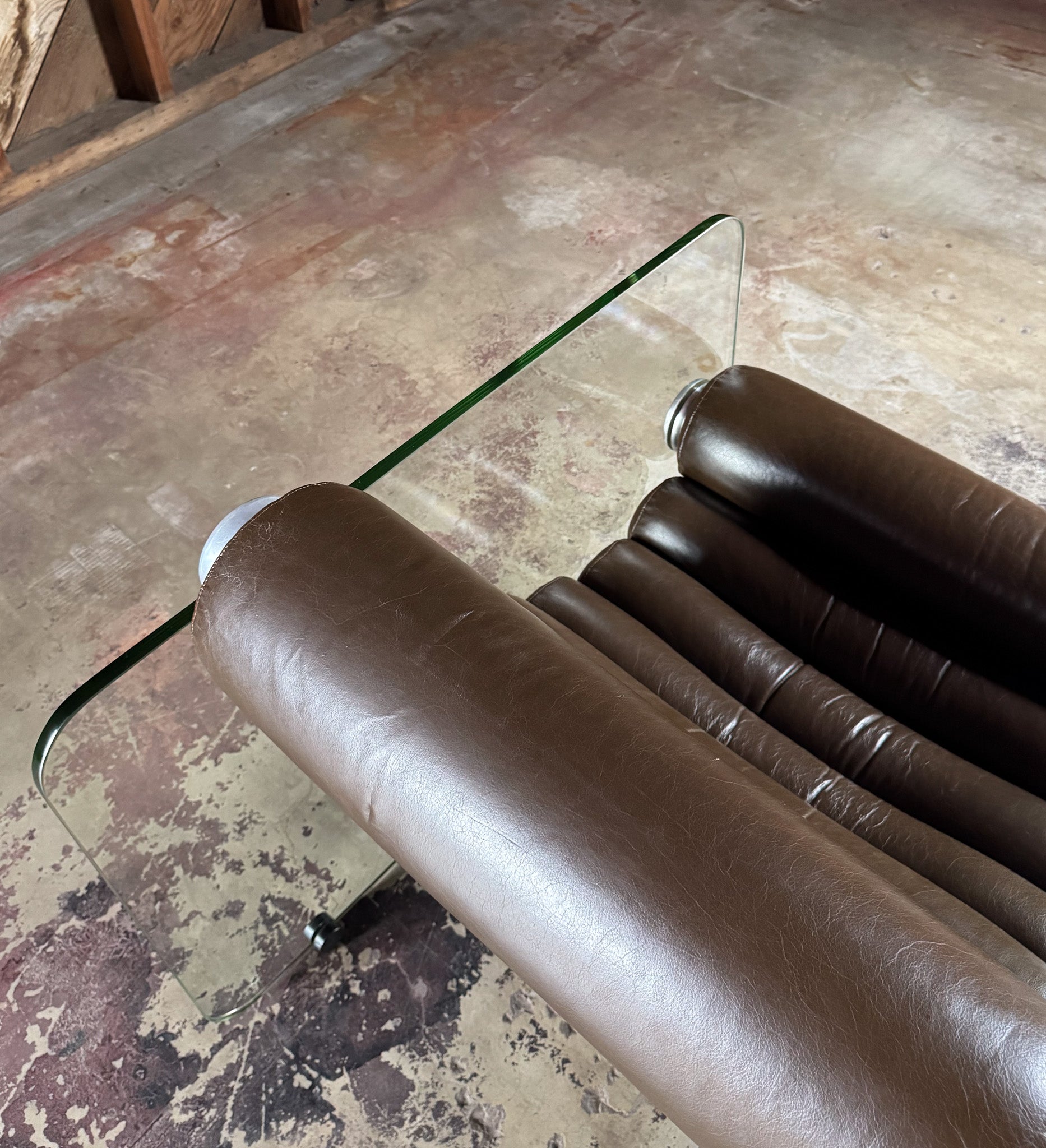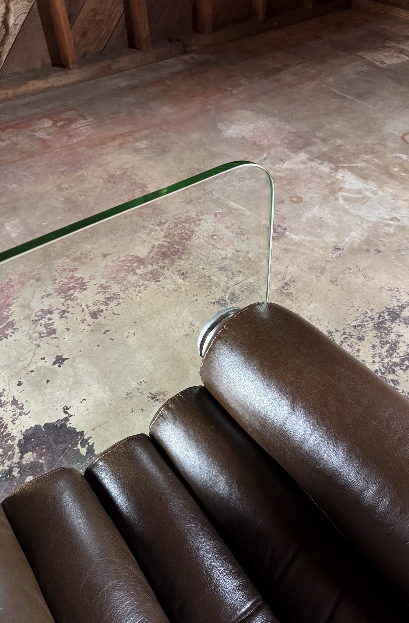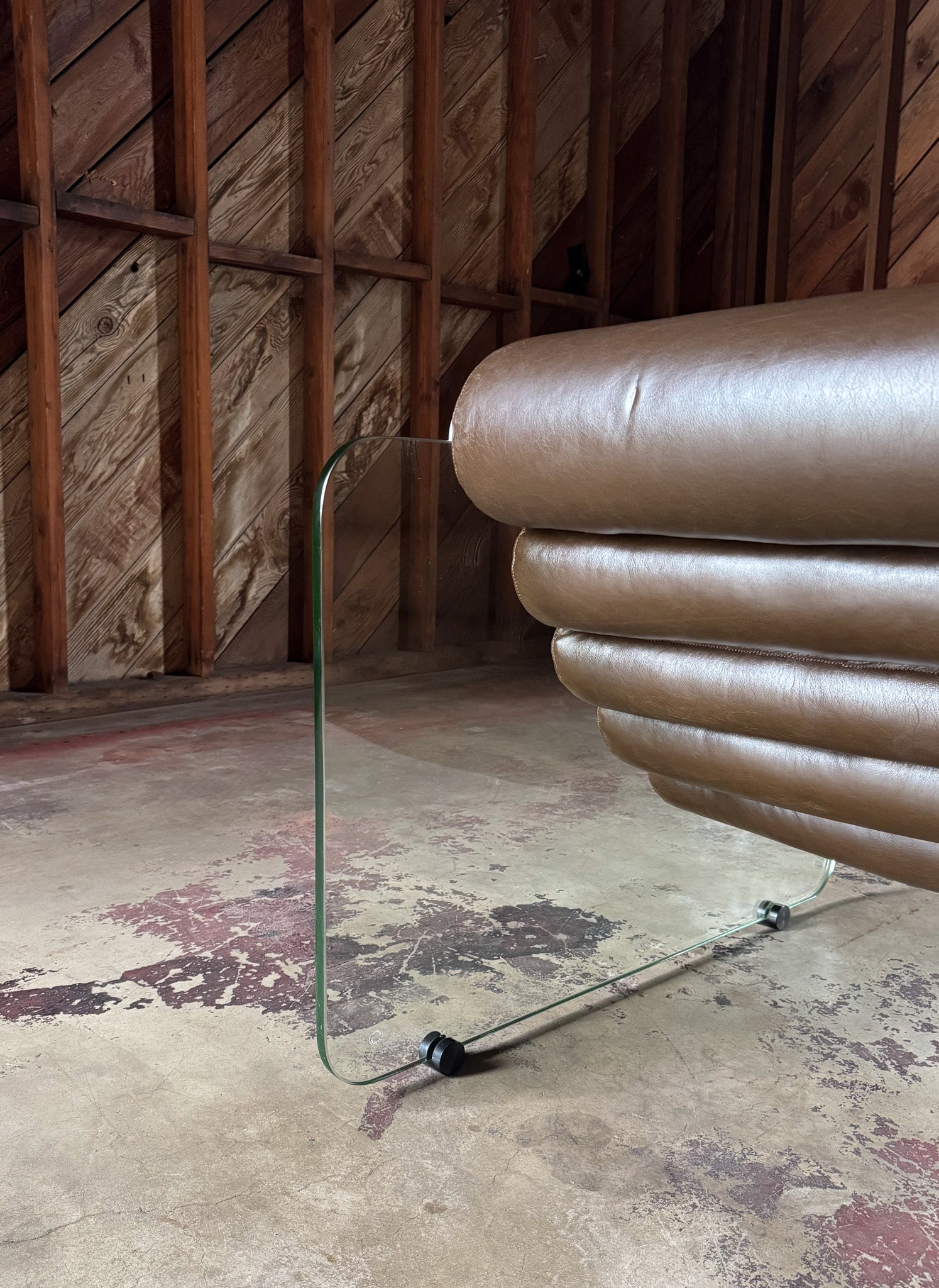 Fabio Lenci Hyaline Lounge Chair for Comfort Line, Italy, c.1970. Tempered Glass, Leather & Aluminum.